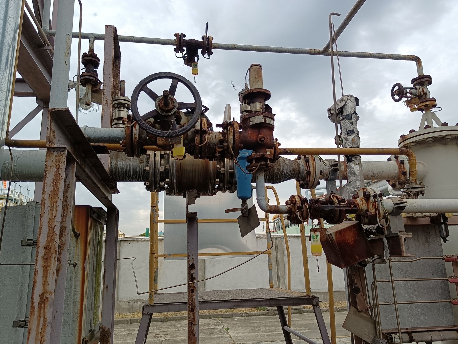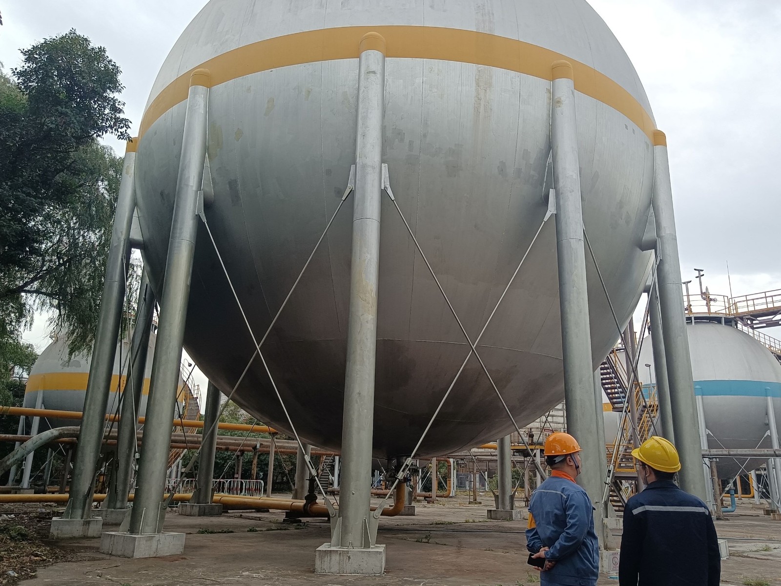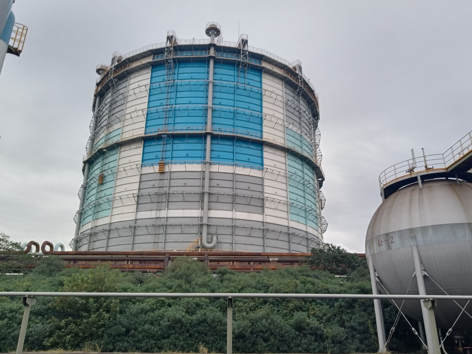 地理位置及周邊環境: 2030制氫站東側為經五路,西側為2050熱軋廠房,南側為成品汽車修車廠,北側為1800冷軋焦爐煤氣站。1420制氫站東面為循環水處理站,南面為冷軋彩涂廠房,西面為五冷軋區域廠房,北面為煤氣加壓站。1730制氫站東側為緯十二東路,南側隔五冷九路為煤氣加壓站及綜合操作室(煤氣加壓站和本站的操作室均設于該建筑內),西側隔彩一西路為五冷軋區域廠房,北側為鍍錫板廠部辦公樓(閑置)。一二期球罐區位于寶鋼鋼鐵基地,其北側為一煉鋼作業區的辦公樓,東側為一二期轉爐煤氣柜電氣室,南側隔緯一路為風雨樓(空樓),西側隔經四路為氮氣儲罐。三期球罐區位于寶鋼鋼鐵基地緯十一路與緯十一支路之間,其東側為轉爐煤氣柜,南側隔緯十一支路為倉庫(丙類),西側為動力中心西區電氣室,北側為緯十一路 | |