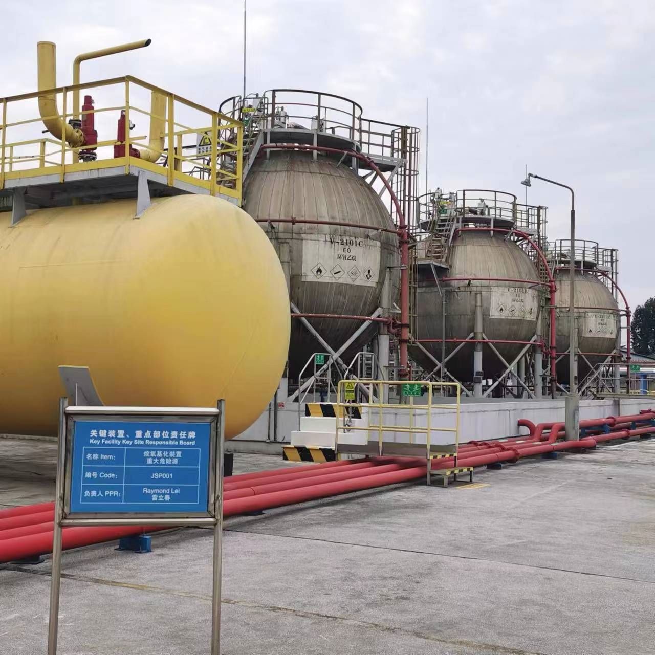 地理位置及周邊環(huán)境: 重大危險(xiǎn)源東側(cè)為衛(wèi)六路;南側(cè)為上海石化腈綸部化工與動(dòng)力車(chē)間外罐區(qū);西側(cè)為上海成宙化工有限公司;北側(cè)為上海液化氣經(jīng)營(yíng)有限公司儲(chǔ)配分公司 | |
