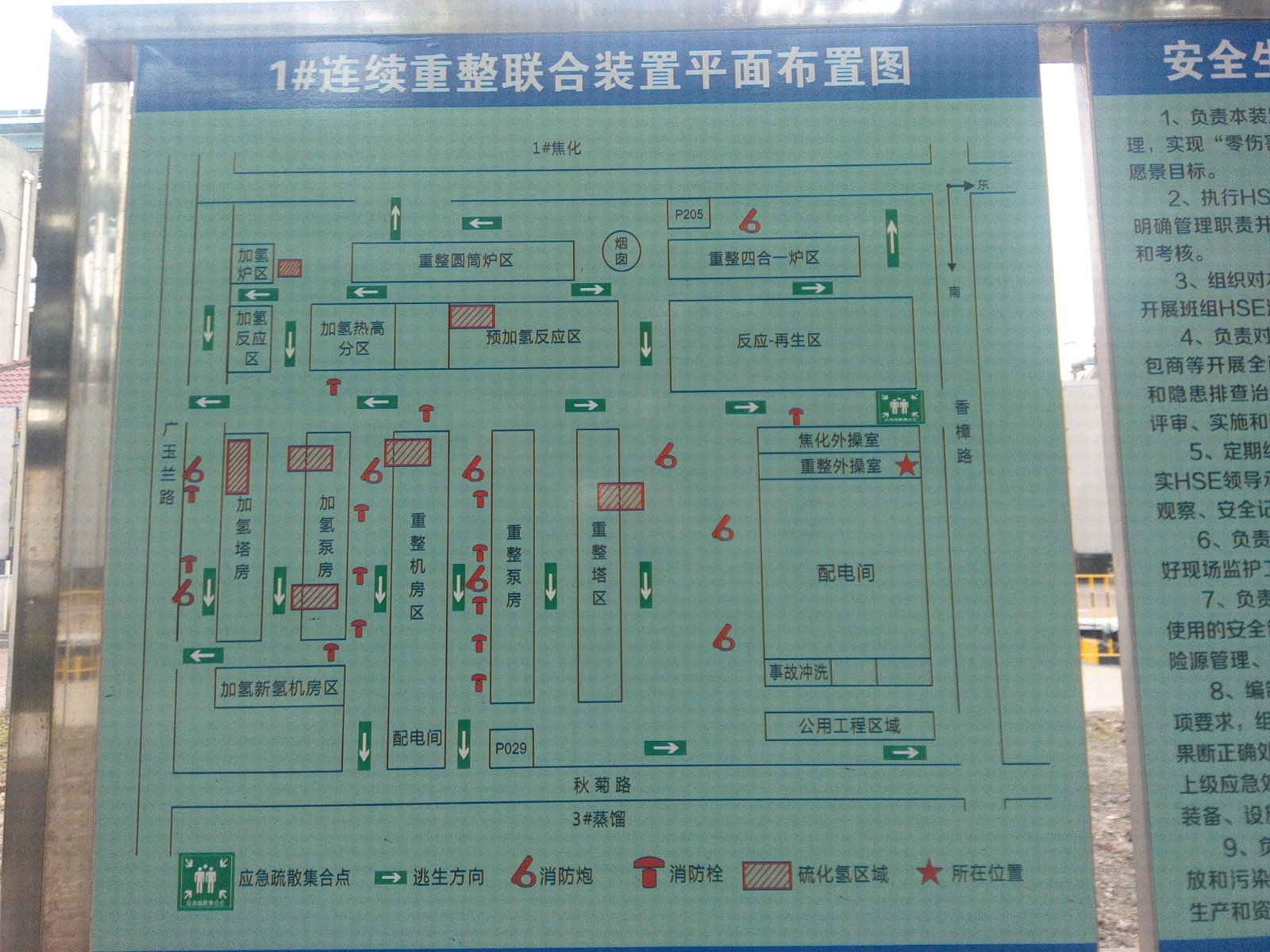 地理位置及周邊環(huán)境:#1連續(xù)重整聯(lián)合裝置東面為秋菊路;南面為廣玉蘭路;西面為桂花路;北面為香樟路。 加氫裂化裝置東面為煉油三部2#溶劑再生裝置和煉油四部酸性水氣提裝置,南面為儲(chǔ)運(yùn)部12#罐區(qū),西面為儲(chǔ)運(yùn)部16#罐區(qū)、煉油二部80萬噸/年汽柴油加氫聯(lián)合裝置和煉油三部3號(hào)硫磺回收裝置,北面為煉油二部辦公樓。 300萬噸/年直餾柴油加氫聯(lián)合裝置,東面為煉油三部3#催化裂化裝置,南面為煉油三部3#常減壓蒸餾裝置,西面為儲(chǔ)運(yùn)部2#聯(lián)合罐區(qū),北面為煉油三部辦公室。 | |